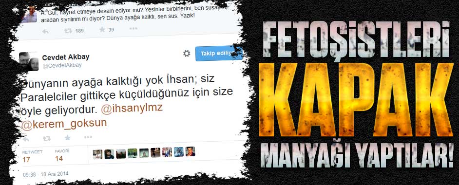 Fetoşistler iyice kontrollerini ve ruh sağlıklarını kaybettiler. Hoş ruh sağlıkları yerinde miydi ayrı konu. Ama Today’s Zaman yazarı İhsan Yılmaz’ın zırvasına Cevdet Akbay’ın yorumu, Fetoşistlerin nasıl tedavilik ruh hastaları olduğunun göstergesiydi. İşte “kapak manyağı” olan bir fetoşist daha: