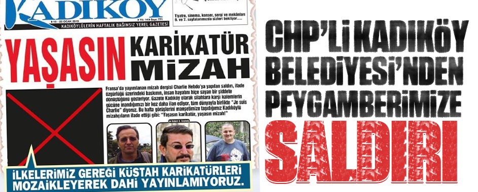 Charlie Hebdo’nun Peygamberimize hakaret içiren karikatürleri, Cumhuriyet’in ardından CHP’li Kadıköy Belediyesi’nin resmi gazetesinde de yayınlandı. Kadıköy Gazetesi, Fnansız dergisinin karikatürlerini yayınlamakla da kalmadı, ‘Yaşasın Karikatür!’ manşeti ile açıkça İslam düşmanlarının safında yer aldı. Charlie Hebdo dergisinin Türkçe nüshalarını yayınlayarak halkın kutsallarına ve hassasiyetlerine adeta savaş açan bir kesimin fütursuzca sürdürdüğü …