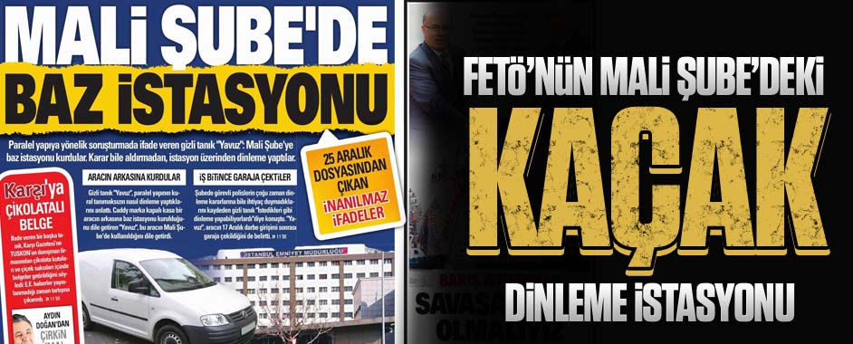 İstanbul Emniyet Müdürlüğü önünde Caddy marka otomobile kurulan baz istasyonuyla paralel yapı polislerinin hiç uğraşmadan dinleme yaptığı ortaya çıktı. Paralel yapıya yönelik soruşturmalarda ifade veren gizli tanık, Mali Şube’de baz istasyonu olduğunu, polislerin bu istasyon üzerinden dinleme yaptığını ve 17 Aralık’tan sonra bu cihazın garaja atıldığını” anlattı. Paralel yapıya yönelik …