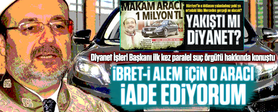 Diyanet İşleri Başkanı Mehmet Görmez, kamuoyunda tartışmalara yol açan 1 milyonluk makam aracı iddiaları konusunda açıklamada bulundu. Görmez, konunun bir algı operasyonuna dönüştürüldüğünü öne sürerek makam aracını iade edeceğini açıkladı. Diyanet İşleri Başkanı Mehmet Görmez, 1 milyonluk araç iddiaları hakkında konuştu. Aracı iade edeceğini söyleyen Görmez, Habertürk TV canlı yayınında …