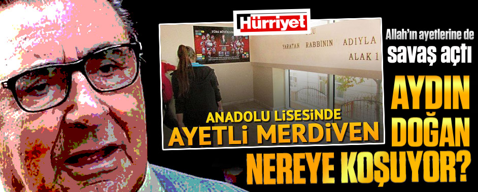 Doğan Medyası’nın Kur’an-ı Kerim rahatsızlığı yine gün yüzüne çıktı. Doğan’ın amiral gemisi Hürriyet, bu kez de İhsan Mermerci Anadolu Lisesi’ndeki havalandırma boşluğunda yazılı duran “Oku! Yaratan Rabbinin adıyla oku” ayetinden rahatsız oldu. Aydın Doğan’ın Müslümanlara ve İslam’a olan düşmanlığı bitmiyor. Yıllardır yaptıkları yanlı haberlerle Müslümanların yaşam tarzını hedef alan Doğan …