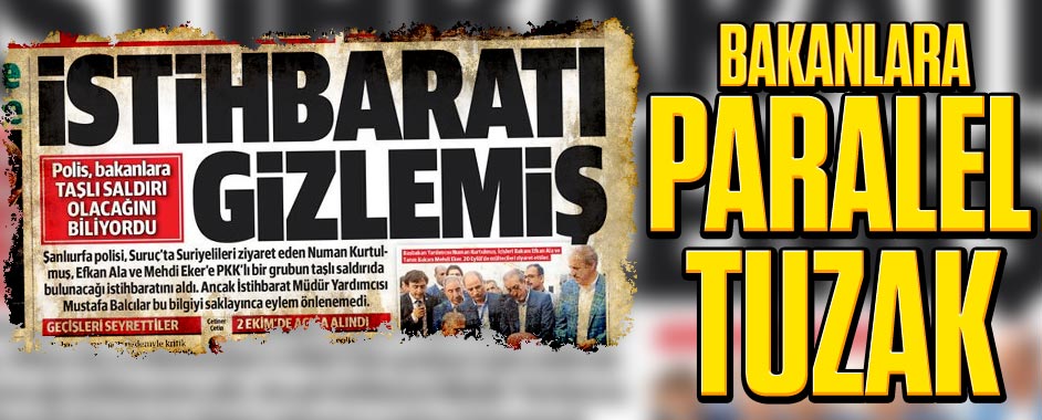 Şanlıurfa Emniyet Müdürlüğü’nde görev yapan paralel yapıya yakın polislerin Başbakan Yardımcısı Kurtulmuş, İçişleri Bakanı Ala ve Tarım Bakanı Eker’e yönelik eylem yapılacağı bilgisini üstlerinden gizledikleri ortaya çıktı. İstihbarat Şube’de görev yapan ve bu olaylar üzerine görev yerleri değiştirilen polislerin şubede terör estirdiği ve görev yeri değişikliği yazısını almak için gittikleri …
