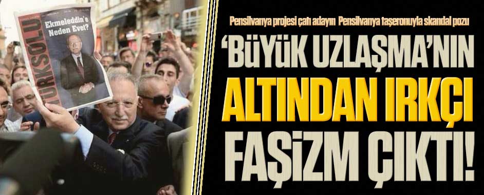 MEDYAGUNDEM.COM- Türkiye’de toplum ve siyasete dair zerre kadar bilgisi ve öngörüsü olmadığı dün verdiği pozla ortaya çıktı. Dün Pensilvanya, CHP ve MHP’nin “çatı adayı” Ekmeleddin İhsanoğlu Taksim’de kendi kendini bitirdi. Kendisini kapak yapıp desteğini açıklayan ırkçı, faşist ve kriminal Türk Solu dergisiyle poz veren İhsanoğlu’dan bırakın cumhurbaşkanı olmayı, Çankaya Köşkü’ne “çaycı” bile …