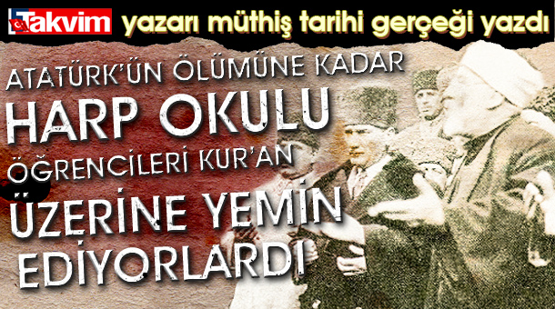 Atatürk döneminde Kur’an üstüne yemin Şimdi, biri çıkıp, “Harp Okullarındaki yemin metnini değiştirelim”dese… Atatürk dönemindeki yemin metnine geri dönülmesini istese… Bizim Atatürk‘ü tanımayan “Atatürkçülerimiz” araştırıp soruşturmadan ayakta alkışlarlar! Bir başkası da Atatürk‘ü hiç karıştırmadan, “Harp Okullarında Kur’an üstüne yemin edilmesini” istese… Türkiye karışır, yer yerinden oynar! “Atatürkçüler” hemen ayağa kalkarlar. “İrtica gemi azıya aldı” diye bağırırlar. “Atatürk’ün kurduğu Laik Türkiye Cumhuriyeti’ni yakmak isteyenlerin iyiden …