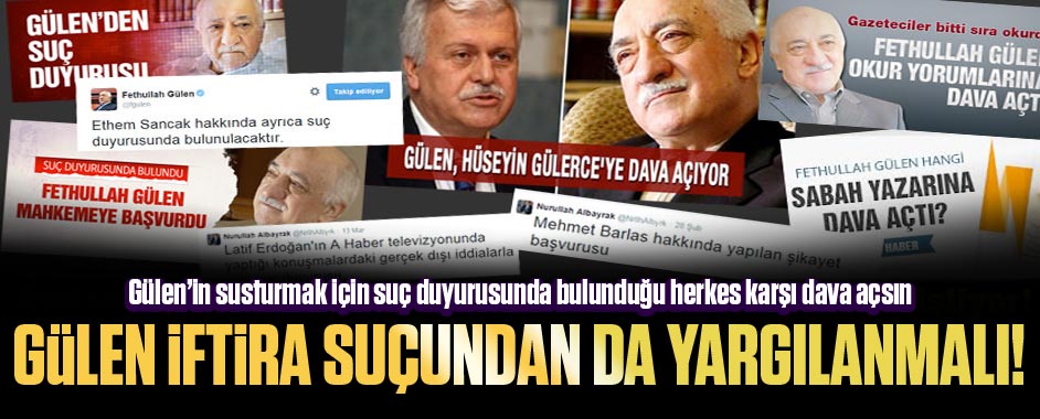 DevamıGülen’in susturmak için suç duyurusunda bulunduğu herkes karşı dava açsın!