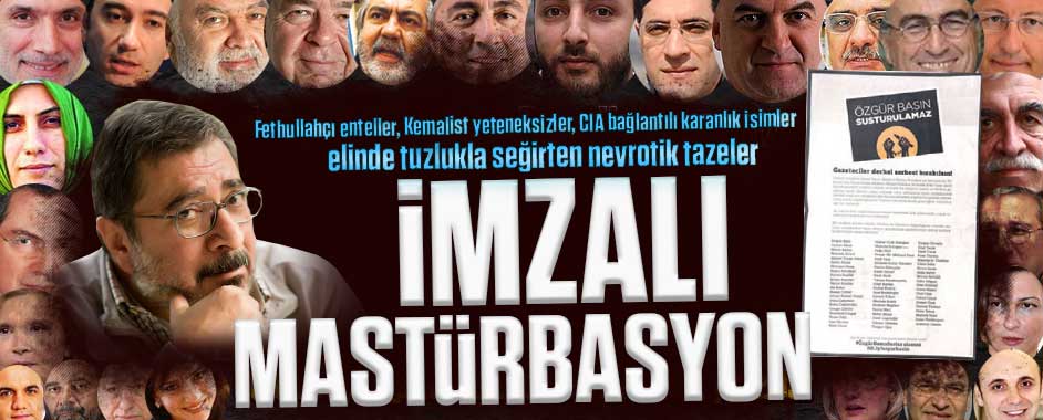 Paralel örgütle dayanışma içine “Özgür basın susturulamaz” diyerek Ekrem Dumanlı ve Hidayet Karaca’nın serbest bırakılmasını isteyen, bir imzalı kampanya ile gazetelere ilan veren gazetecilere en ağır yazı Sabah gazetesi yazarı Engin Ardıç’tan geldi. İşte “İmzalı mastürbasyon” başlıklı yazısı: ESKİDEN SENİN BU YAPTIĞINA İSTİMNA DERLERDİ Senin imzanın bir ağırlığı, bir etkinliği …