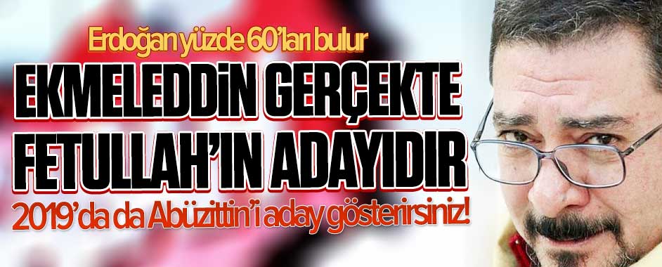 Sabah gazetesi yazarı Engin Ardıç CHP ve MHP’nin çatı adayı Ekmeleddin İhsanoğlu’nun gerçekten “Fetullah’ın adayı” olduğunu yazıp, “Erdoğan ilk turda yüzde 50’nin üstüne çıkar diyorduk, şimdi artık yüzde 60’ları telaffuz etmeye başladık. Neyse canım, zarar yok, 2019’da da Abüzittin’i gösterirsiniz!” diye yazdı. Yazısı şöyle: DAHA ADAYININ İSMİNİ BİLMEYEN KILIÇDAROĞLU Kılıçdaroğlu beni …