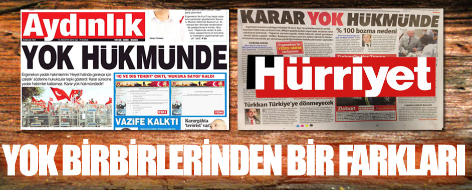 Hürriyet Gazetesi’nin yaptığı yıkıcı haberlerle gündeme gelen Aydınlık Gazetesi’yle aynı dili kullanması dikkat çekti. Ergenekon davasına bakan İstanbul 13. Ağır Ceza Mahkemesi’nin yedek hakimlerinin, mahkemenin karar müzakerelerine katıldığının iddia edilmesinin ardından yeni bir tartışma ortaya çıktı. Söz konusu kararın geçersiz sayılması gerektiği fikri yazılı ve görsel basında tartışılmaya başlandı. Doğan …