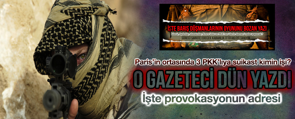 MEDYAGÜNDEM- Türkiye’de Abdullah Öcalan ile İmralı’da Kürt sorununun çözümü için yeniden adımlar atılmaya başlarken, Paris’ten PKK’ya suikast haberi geldi. PKK’nın Paris merkezindeki Enformasyon bürosuna kimliği belirsiz silahlı kişilerce yapılan saldırıda aralarında PKK’nın kurucularından Sakine Cansız’ın da bulunduğu 3 PKK’lı kadın öldürüldü. “Karanlık odaklar” belli ki düğmeye bastı, barış sürecini tıkamak …