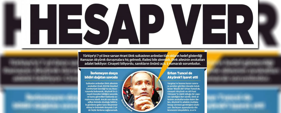 Cinayeti azmettirdiği için cezaevinde olan Erhan Tuncel, ifadesinde Akyürek’i işaret etti.Cinayeti bilen, önlemeyen hatta destekleyen Akyürek, hâlâ hakim karşısına çıkmadı. AGOS Gazetesi Genel Yayın Yönetmeni Hrant Dink’in ölümünün 7. yıldönümünde cinayetin arkasındaki karanlık güçler hâlâ aydınlatılamadı. Türkiye’nin gündemini sarsan ‘paralel yapılanma’ ile ilgili tartışmaların sürdüğü şu günlerde Dink Ailesi’nin avukatlarının …