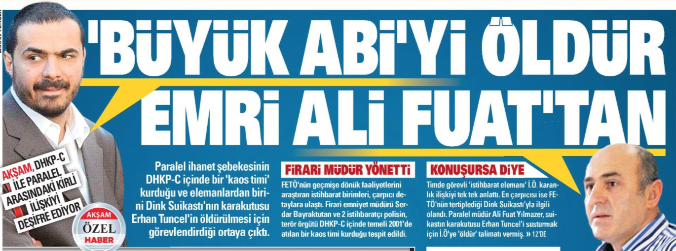 Erhan Tuncel’in Hrant Dink suikastinden cemaate yakın iki emniyet bürokratını suçlamasına cemaatin gazetelerinin tavrı dikkat çekiciydi. Hrant Dink suikastinin kilit isimlerinden Erhan Tuncel’in yaptığı açıklamalar medyada geniş yer bulurken cemaat gazeteleri ise hayli ilginç bir tutum aldı. HER YERDE MANŞET BUGÜN VE TARAF’TA YOK! Bugün ve Taraf gazeteleri ‘Büyük Abi’nin …