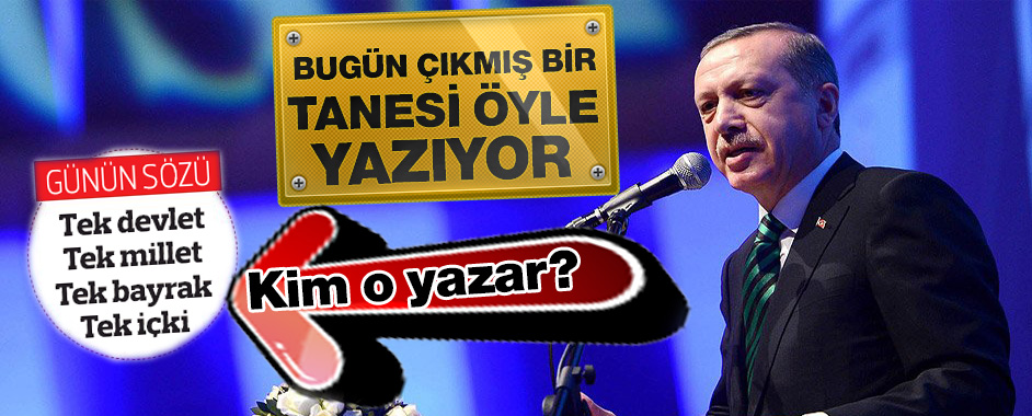 MEDYAGÜNDEM- Başbakan Erdoğan, bugün Haliç Kongre Merkezi’nde düzenlenen 22. Müstakil Sanayici İşadamları Derneği (MÜSİAD) Olağan Genel Kurulu’nun açılışında yaptığı konuşmada, medyadaki içki tartışmasına da değindi. Erdoğan, “Bugün bir tanesi öyle yazıyor. ‘Tek devlet, tek bayrak, tek milli içki’. Ben, Yeşilay toplantısında, Türkiye’nin parlamentosunda ilk çıkan 5 yasasının birinden bahsettim. Yani …