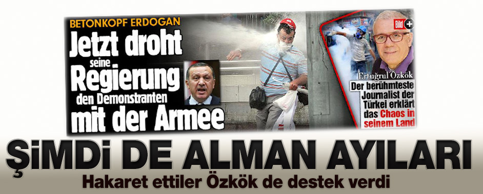 Türkiye’de devam eden olaylar Almanya’da da gündemin ilk sıralarında yer alırken, ülkenin önde gelen gazeteleri provokatif yayınlarını sürdürüyor. Bild gazetesi Başbakan Erdoğan için “beton kafalı Erdoğan” dedi. Erdoğan için ağır hakaretlerde bulunan gazete, Ertuğrul Özkök’ün de Türkiye’deki olaylarla ilgili yorumuna yer verdi. Başbakan Tayyip Erdoğan için “beton kafalı Erdoğan” diyen …