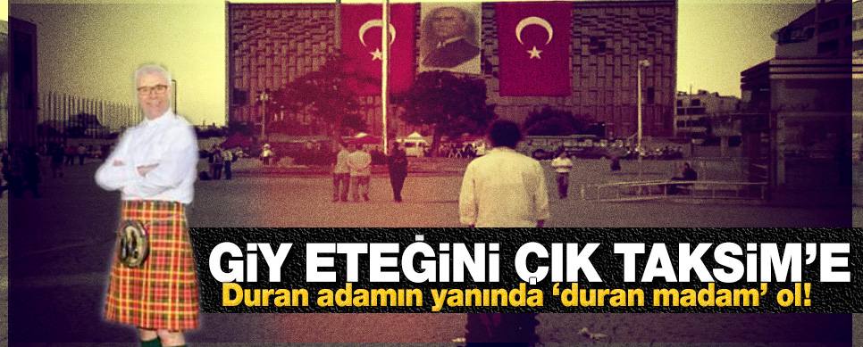 Giy eteğini, çık Taksim’e… Duran Adam’ın yanında Duran Madam ol! Hürriyet yazarı Ertuğrul Özkök’ün önceki günkü, “Çünkü biz çok iyi anladık” başlıklı yazısından dolayı çok sayıda telefon aldım… Ertuğrul “anladık” diyor ama, Bizim okurlarımız onun yazısındaki “bir cümlesini” anlayamamışlar. Ertuğrul demiş ki; “Her gün günde 5 defa azarlanmak, tehdit edilmek, …
