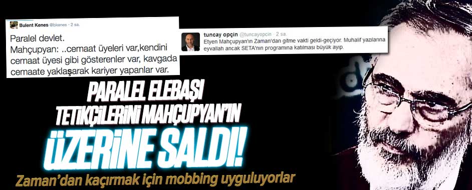 MEDYAGUNDEM.COM- Gülen örgütü gazetesi Zaman’da tek başına demokrasi ve millet adına kahramanlar gibi mücadele eden Etyen Mahçupyan’ın üzerine paralel örgütün tetikçileri salındı. Gülen örgütü Mahçupyan’dan aşırı derecedeki rahatsızlığıyla ne yapacağını şaşırdı. Belli ki örgüt çare olarak demokrat yazara mobbing, yıldırma ve tetikçiler eliyle saldırı planını devreye koydu. Gülen örgütünün dili …