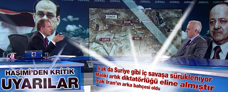 MEDYAGÜNDEM- Irak Cumhurbaşkanı Eski Yardımcısı Tarık El Haşimi, A Haber’de Fatih Er’in sunduğu Jurnal programına konuk oldu. “Suriye’de yaşanan trajedinin Irak’ta aynen tekrarlanacağını görüyorum” diyen Haşimi, Irak’ın İran’ın arka bahçesi haline geldiğini de dile getirdi. Maliki’nin artık diktatörlüğü ele aldığını da belirten Haşimi “Güvenlik, maliye, yargı ve medya Maliki’nin kontrolünde” …