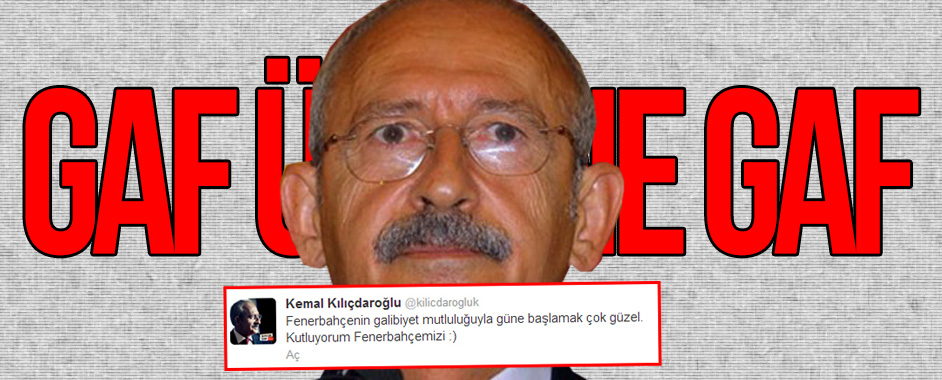 Resmi twitter hesabından “tulum” yerine “Gayda dinleyip, horona eşlik edip, hemşehrilerimizle sohbet ettik” yazan ekibini görevden uzaklaştıran CHP Genel Başkanı Kemal Kılıçdaroğlu’nun yeni “twitter” mesajı yazım ekibi de özensiz çıktı. Yeni yazım ekibi sabah erken saatlerinde Kılıçdaroğlu’nun twitter hesabından “Fenerbahçenin galibiyet mutluluğuyla güne başlamak çok güzel. Kutluyorum Fenerbahçemizi :)” mesajı …