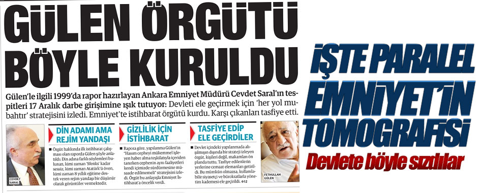 Gülen’le ilgili 1999’da rapor hazırlayan Ankara Emniyet Müdürü Cevdet Saral’ın tespitleri 17 Aralık darbe girişimine ışık tutuyor: Devleti ele geçirmek için ‘her yol mubahtır’ stratejisini izledi. Emniyet’te istihbarat örgütü kurdu. Karşı çıkanları tasfiye etti. Fethullah Gülen ve grubuyla ilgili devletin hazırladığı ilk istihbarat raporu, örgütün darbeye nasıl hazırlandığını gözler …