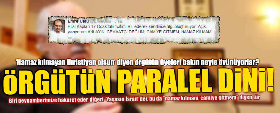 MEDYAGUNDEM.COM- Gülen örgütünün operasyoncusu Emre Uslu bugün Twitter’da, “Açık yazıyorum ANLAYIN: CEMAATÇİ DEĞİLİM, CAMİYE GİTMEM, NAMAZ KILMAM” açıklaması yaptı. Namaz kılmadığını, camiye gitmediğini söyleyen Emre Uslu’nun bu duyurusu Gülen örgütünün “Namaz kılamayanlar Hıristiyan olabilir” şeklindeki fetvasını akıllara getirdi. Sahi Emre Uslu namaz kılmak, camiye gitmek ağır geldiği için Gülen örgütünün …