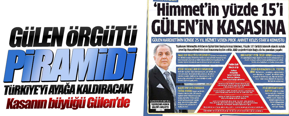 ‘Fethullah Gülen Cemaati’nde 25 yıl görev alan Prof. Dr. Ahmet Keleş, paralel yapının piramidini STAR’a anlattı. 5’inci kata kadar çıkan Keleş, cemaatin 1, 2 ve 3’üncü katmanının halk tabakası olduğunu, öğrenciler ve öğretmenlerin oluşturduğunu söyledi. Prof. Keleş, “4. kat ara kattır. 5, 6 ve 7. katmanlar ‘örgüt ve teşkilat’ katlarıdır. …