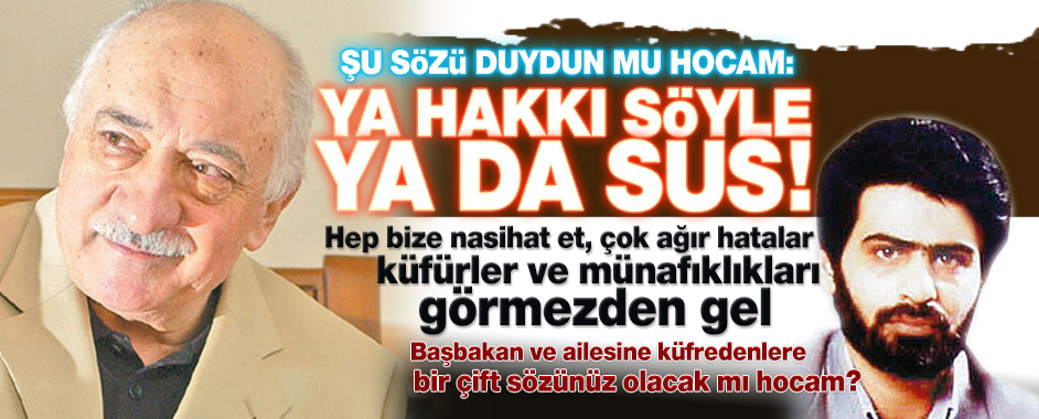 Hükümeti yıkmaya yönelik Batı destekli kalkışmanın başlamasıyla kendisine bağlı yayın organlarından Başbakan Erdoğan aleyhine yayınlar yapılan Fethullah Gülen, siyasi mesajlar vermeye devam ediyor. Başbakan’ın, Batı destekli isyancılara “çapulcu” demesini yanlış bulduğunu ima eden Fethullah Gülen’e Akit Gazetesi yazarı Ali İhsan Karahasanoğlu sert tepki gösteren bir yazı yazdı. Önceki gün yayınlansa …