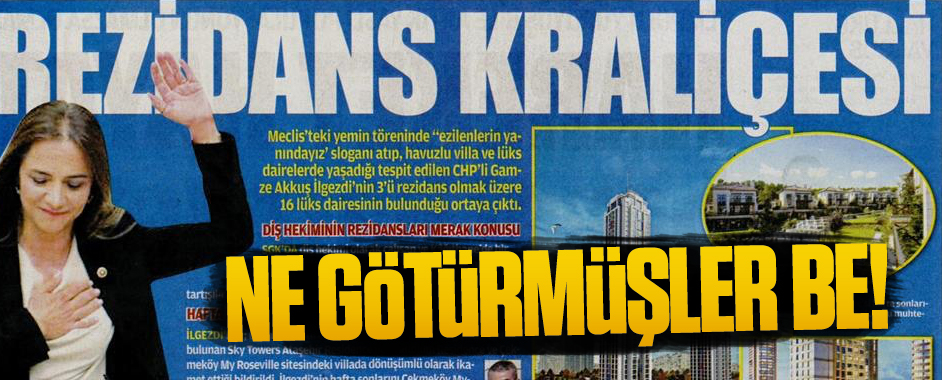 Meclis’teki yemin töreninde “ezilenlerin yanındayız’ sloganı atıp, havuzlu villa ve lüks dairelerde yaşadığı tespit edilen CHP’li Gamze Akkuş İlgezdi’nin 3’ü rezidans olmak üzere 16 lüks dairesinin bulunduğu ortaya çıktı. Akit; Türkiye’nin gündemini belirlemeye devam ediyor. Meclis’te sol yumruğunu havaya kaldırarak “ezilenlerin yanındayız” mesajı veren CHP İstanbul Milletvekili Gamze Akkuş İlgezdi’nin Bağdat Caddesi’nde Four …