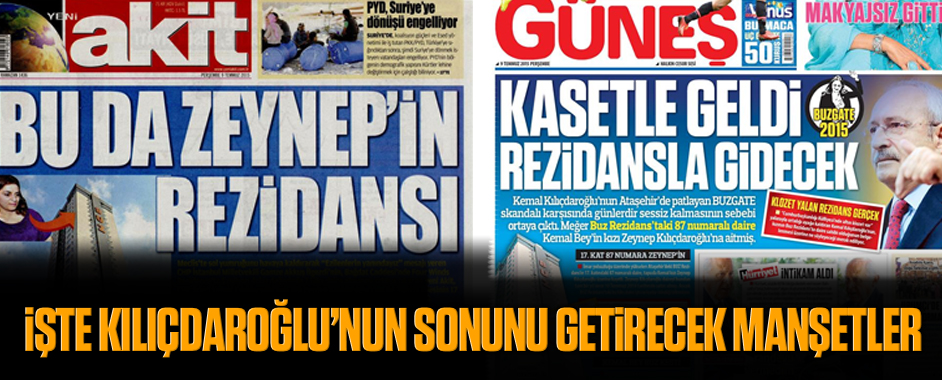 CHP’deki rezidans skandalı Kemal Kılıçdaroğlu’na uzandı. Bugün Yeni Akit ve Güneş’in manşetleri kaset skandalıyla gelen Kılıçdaroğlu’nun rezidans skandalıyla gideceğinin habercisi gibiydi. İşte bomba haber: CHP’li Gamze İlgezdi’nin 15 rezidans dairesinin tespit edilmesiyle ortaya çıkan BUZGATE skandalı karşısında, Kılıçdaroğlu’nun sessiz kalmasının nedeni belli oldu. Skandal, kızı Zeynep’e kadar uzanıyor. CHP Genel …