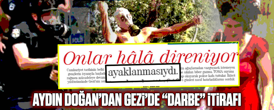 Aydın Doğan’ın gazetesi Gezi’deki “darbe”yi itiraf edip bir de “kutsadı”! MEDYAGUNDEM.COM- Ne dedik hep? Gezi’de üç beş tane ağacı bahane edip sokakta terör yaratanların derdi; “darbe”, “ayaklanma” ve “kalkışma” idi. Gülen örgütünün perde gerisinden kışkırttığı, Aydın Doğan’ın ise açıktan darbe için provoke ettiği olaylarla Türkiye’ye diz çöktürülmek istendi. Bugün Aydın Doğan …
