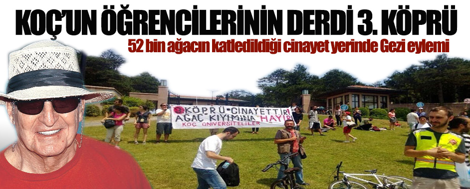 Gezi ayaklanmasında aktif rol alan Koç Grubu’na ait Koç Üniversitesi’nde, ağaçların kesileceği gerekçesiyle 3. Köprünün yapımının durdurulması için eylem yapıldı. Bu eylemi trajikomik hale getiren ise eylemin 52 bin ağacın kesilerek yapıldığı Koç Üniversitesi’nde gerçekleştirilmesi oldu. Taksim Gezi Parkı’nda ağaçlar kesilecek diye başlatılan ve 40 gündür devam eden Gezi ayaklanmasına …