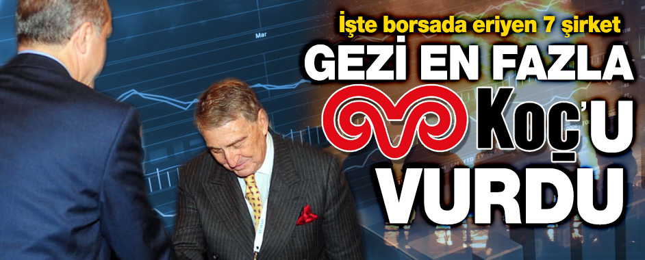 Yurtdışı piyasalarda yaşanan bozulma ve Gezi Parkı protestoları nedeniyle 30 Mayıs-14 Haziran tarihleri arasında Borsa İstanbul yüzde 8.21 değer kaybederken, borsada işlem gören 407 şirketin piyasa değeri ise 25.8 milyar dolar eridi. EN BÜYÜK ZARARI 7 ŞİRKET GÖRDÜ Bu rakamın 15.2 milyar doları 7 Grubun borsadaki şirketlerine ait. Habertürk’ten Sefer …