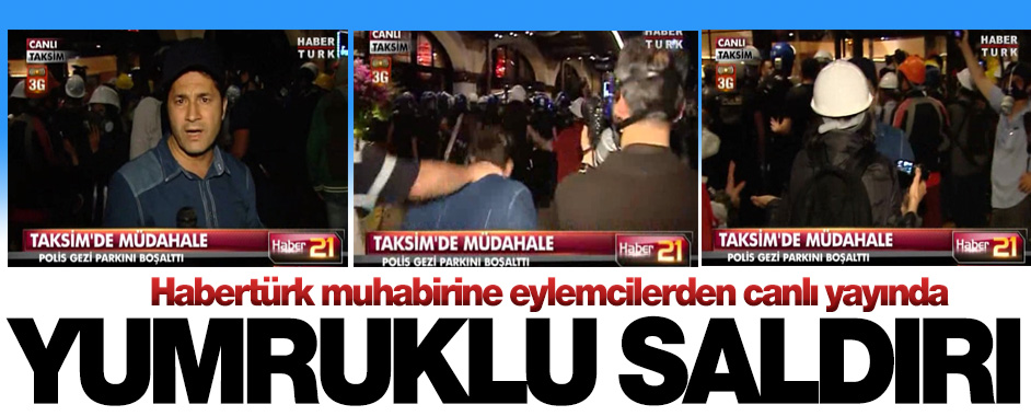 MEDYAGÜNDEM- Gezi Parkı’nda polisin müdahalesini ekrana getiren Habertürk istihbarat şefi Rıdvan Bıyık’a canlı yayında eylemcilerden yumruklu saldırı geldi. Divan Oteli önündeki müdahaleyi canlı yayında aktaran Bıyık, “marjinal gruplar polisi tahrik ediyor”deyince, eylemcilerden biri Bıyık’a yumrukla saldırdı. “Marjinal grup” denmesine karşı çıkan marjinal grup üyeleri Habertürk istihbarat şefi Rıdvan Bıyık’a şiddet …