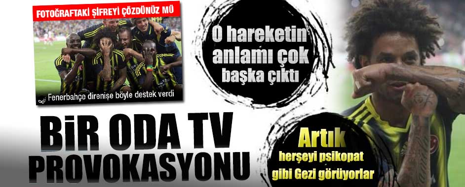 Adamlar psikopat gibi herşeyi “Gezi” görmeye başladılar. İşte Oda TV provokasyonu. Geziciler Twitter’da dünkü maçta Fenerbahçeli futbolcuların Taksim’deki direnişe destek verdiklerini iddia ettiler, işin altından başka bir şey çıktı. TAKSİM’İN “T”Sİ VE GAZ MASKESİ Baroni’nin 90+3’te attığı golün ardından büyük sevinç yaşayan Fenerbahçeli oyuncular, T harfi ve gaz maskesini andıran …