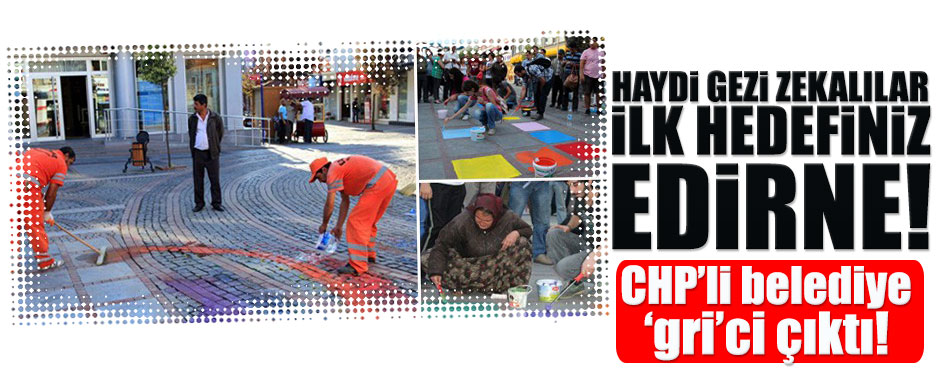 Edirne Saraçlar Caddesi’ndeki döşeme taşlar, bir grup Gezici tarafından rengarenk boyandı. Grubun gitmesinin ardından CHP’li belediye taşlardaki boyaları sildi. Ellerinde boya kutuları, fırça ve renkli flamalar olan bir grup caddeye geldi. Ali Gürbüz, gruptakiler adına yaptığı açıklamada, Fındıklı’dan Cihangir’e çıkan Salıpazarı Yokuşu’nun merdivenlerindeki boyama olayını anımsattı. Gürbüz, dünyayı rengarenk ve …