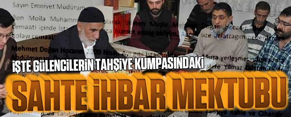 İşte Gülen örgütünün Tahşiyeciler grubuna yönelik kumpasındaki sahte ihbar mektubu… Türkiye günlerdir Tahşiyeciler olarak adlandırılan ama gerçek anlamda Risale-i Nur takipçileri olan kişilere yapılan zulmü konuşuyor. İstanbul Emniyet Müdürlüğü İstihbarat Daire Başkanlığı 24.04.2009 gelen imzasız, tarihsiz, isimsiz bir ihbar mektubuna binaen düğmeye basıyor. İstihbarat Dairesi 04.05.2009 tarihinde Tahşiye mensuplarını takip …
