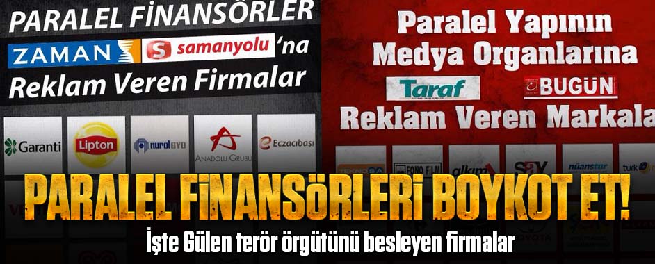 DevamıParalel terör örgütüne reklam veren firmaları boykot kampanyası!