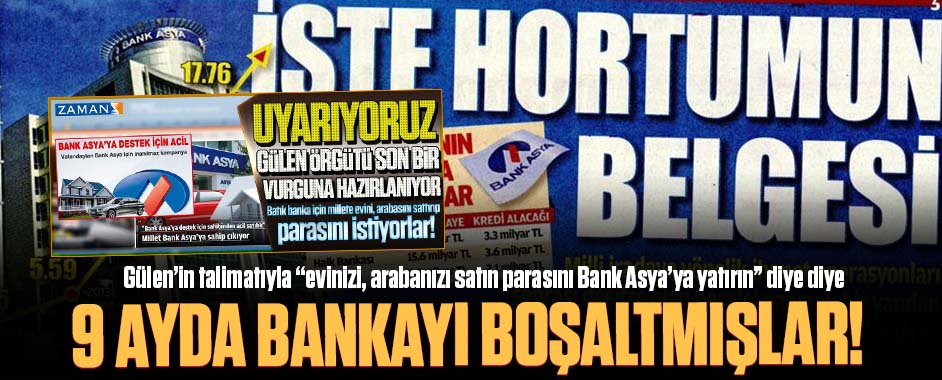 Paralel yapının, bankanın elden gittiğini anladıktan sonra bir taraftan tabana “altınlarını, arabanı sat bankanı kurtar” mesajı verirken, diğer taraftan BDDK’dan gizlice bankanın içini boşalttığı ortaya çıktı. Akit’in ulaştığı veriler, Bank Asya’nın deyim yerindeyse sıfırı tükettiğini ortaya koydu. TMSF tarafından yönetimine el konulan Bank Asya ile ilgili paralel basında çıkan “Yeterlilik …