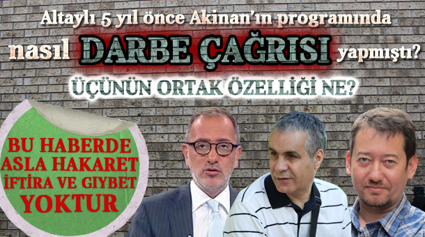 MEDYAGÜNDEM- Hiç yorum yapmıyoruz, Türk medyasındaki ilişkileri göstermesi açısından çarpıcı bir örneği gözler önüne sermek istiyoruz. Fatih Altaylı, Serdar Akinan ve Hadi Özışık… Bu üç ismin ortak özelliği ne olabilir? Gelin önce biraz arşivden bilinmeyen detaylara girelim: Tarih: 3 Eylül 2007. Sky Türk’te Serdar Akinan’ın “Hafta Başı” adlı programının konuğu …