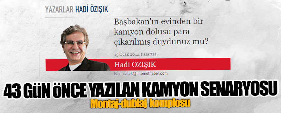 MEDYAGUNDEM.COM- Gözü dönmüş çete, Türkiye’ye yönelik yıkım projesinde sahte belgeler ve montajlı kasetlerle intihar saldırısı yapmaya devam ediyor. Dün akşam Başbakan Erdoğan’a ait olduğu iddia edilen bir ses kaydının ardından Gülen örgütünün militanları bir “kamyon senaryosu” ortaya attılar. Güya Başbakan Erdoğan’ın evinden kamyonlarla paralar çıkarılmış… Dublaj, montaj ve piyes yetmedi bir …