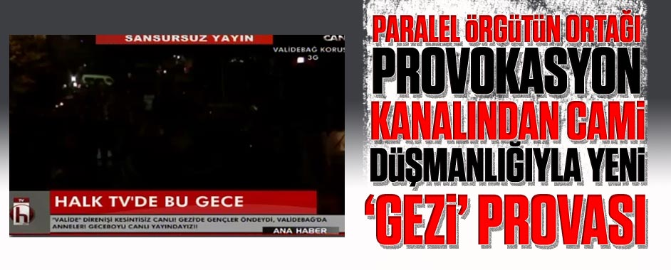 Gezi kalkışmasında provakatif haberleriyle ön plana çıkan CHP’nin kanalı Halk tv yine sahnede! Gezi kalkışması sırasında provakatif yayınlarıyla ön plana çıkan ‘Zaman gazetesi’nin de reklam verdiği Halk tv provakatif haberleriyle yine sahneye çıktı. Üsküdar Validebağ korusunda cami yapımına karşı çıkan ‘Cami düşmanlarını’ın eylemlerini canlı yayında provakatif bir şekilde veren Halk …