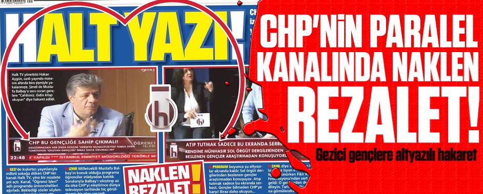 Halk TV, Gezi olaylarında halkı kışkırttı Eylemcileri yere göğe sığdıramadı ‘Öğrenci İşleri’ programında ise CHP’yi eleştiren Gezici gençlere alt yazılarla hakaretler yağdırdı. Cumhuriyet Halk Partisi’nin kanalı Halk TV, övgüler yağdırdığı Gezici gençleri “cahillikle” suçladı. Halk TV, Gezi olayları sırasında kışkırtıcı yayınlar yaptı. Gezici gençleri ekrana taşıyarak, onların ekmeğini yedi! Demokrasi, …