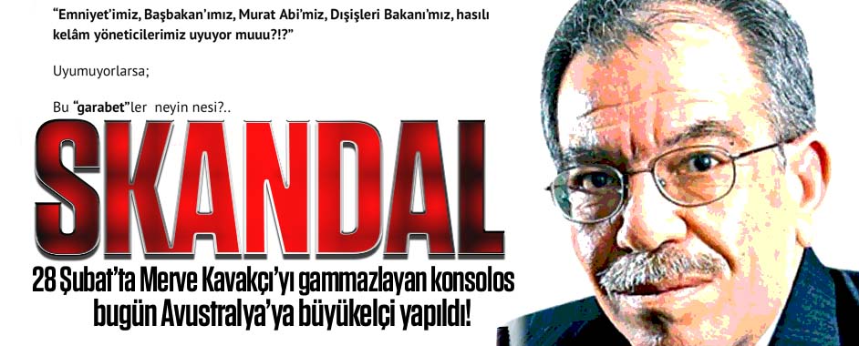 Yeni Akit gazetesi yayın koordinatörü Hasan Karakaya bugün İstanbul Şehir Üniversitesi rektörlüğüne FETÖ medyası yazarı Ali Atıf Bir’in seçilmesi skandalını yazdığı yazısında bir skandalı daha deşifre etti. 28 Şubat döneminde Merve Kavakçı’yı gammazlayan konsolosun bugün Ak Parti iktidarında büyükelçi olarak atandığı skandalını yazıp, “Emniyet’imiz, Başbakan’ımız, Murat Abi’miz, Dışişleri Bakanı’mız, hasılı kelâm …