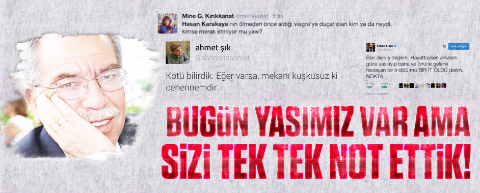 Medine’de vefat eden meslektaşı Hasan Karakaya için başta FETÖ’nün tetikçileri ve FETÖ yancısı solcu görünümlü soysuzlar sosyal medyadan çirkin bir yorumlarda bulundu. İşte alçaklığın örnekleri: