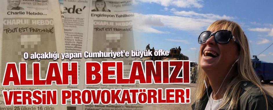 İslam dünyasında infiale neden olan Charlie Hebdo dergisinin yayınladığı karikatürü Cumhuriyet’in iki yazarı bugün köşesinde yayınladı. Ceyda Karan ve Hikmet Çetinkaya’nın alçakça provokasyonuna sosyal medyada tepki yağdı. İşte o tepkiler: