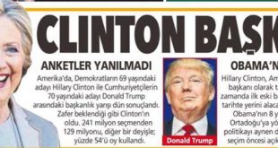 Aşağıdaki kupür 9 Kasım 2016 tarihli Posta gazetesine ait. Yani yarın Türkiye’de özellikle taşra baskısı dediğimiz nüshayı görenler, ABD başkanlık seçimlerini Clinton’un kazandığını okuyacaklar. Ancak şu gerçeği bilmeyecekler. Bu haber daha oy verme işlemi devam ederken, henüz hiçbir şey belli değilken atıldı. Yani Aydın Doğan medyası tarafından Clinton başkan ilan …