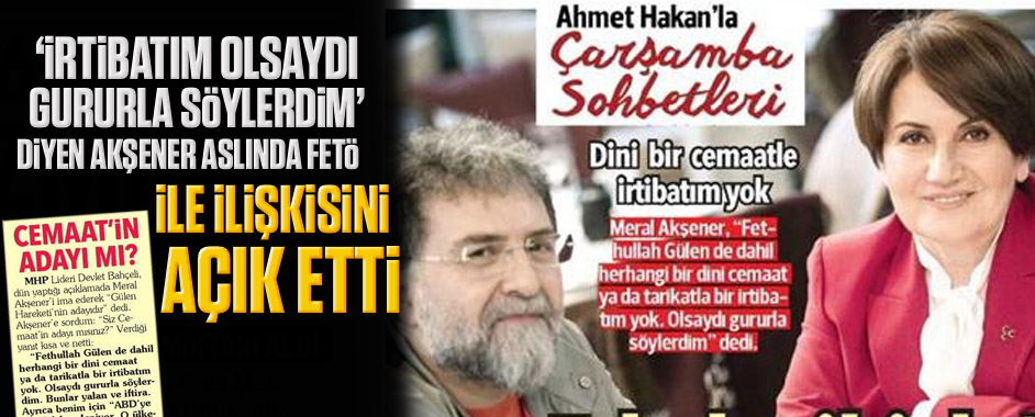 Meral Akşener kendini açık etti. “İlişkim olsa gururla söylerdim” diyen Akşener FETÖ ile ilişki kurmayı bir “gurur” olarak gördüğünü itiraf etti. MEDYAGUNDEM.COM- MHP Lideri Devlet Bahçeli’nin dün yaptığı “Şu an 3 aday vardır. Bu arkadaşların demokratik hakkıdır. Bir tanesinin zaten aday olma hakkı yoktur. Davası Yargıtay’dadır. İçinde birisi vardır ki …