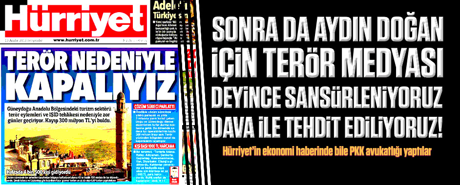1 Kasım’a kadar Hürriyet gazetesi PKK terörünü “PKK” adını vererek manşet yapmazdı. PKK adını ısrarla gizleyen ve terörle anmayan Hürriyet’te büyük değişim rüzgarları esiyor. Aydın Doğan’ın damadı M. Ali Yalçındağ’ın Doğan medyasının CEO’luğuna getirilmesiyle birlikte Hürriyet’te artık PKK terörü manşetten duyurulmaya başlandı. Hürriyet PKK’ya terör örgütü demekle kalmadı bir de …
