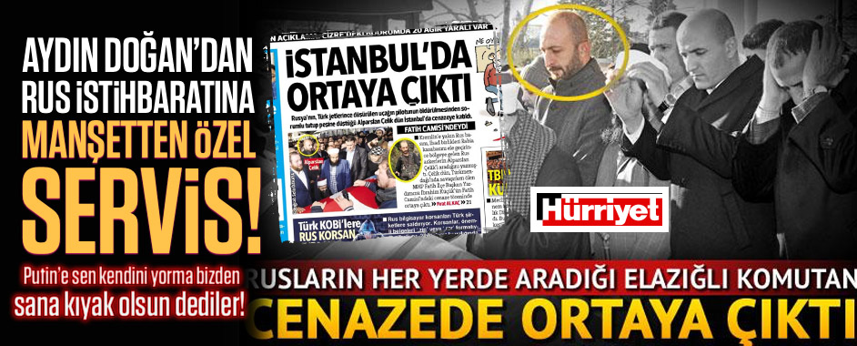 Aydın Doğan medyasının asla yerli ve milli olmadığı, olamayacağı iki çarpı iki eşittir dört kadar net artık. Bugün Hürriyet gazetesi birinci sayfasından Rus istihbaratının fellik fellik aradığı Türk’ü Rusya’ya jurnalledi. Bir de haberi “Rusların her yerde aradığı Elazığlı komutan” diye manşetine çeken Hürriyet.com.tr, Putin’e manşetten “gel vur, bizden sana özel …