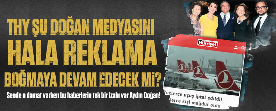 Kötü hava koşulları THY ve diğer havayolu şirketlerine bazı seferleri iptal etmek zorunda bıraktı. Ancak Damadı Pegasus’un sahibi olan Aydın Doğan’ın Hürriyet gazetesi THY’yi hedef aldı. Damadının havayolu şirketini kollayıp THY’yi karalayan Doğan medyasına THY’nin reklam desteği vermeye devam etmesi bir çelişki olarak dikkat çekiyor. THY, yoğun kar yağışı nedeniyle bazı …