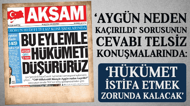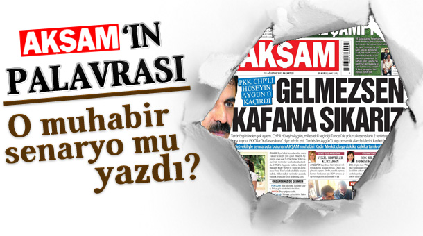 Akşam’ın palavrası! “CHP Milletvekili Hüseyin Aygün’ün kaçırılması” haberini “en geniş ve en canlı” veren Akşam gazetesi idi… Akşam, 13 Ağustos tarihli manşetinde, “Gelmezsen, kafana sıkarız” başlığını kullanıyor ve habere, kendi muhabiri Kadir Merkit’in “izlenim”lerini de ekliyordu… Haberden öğreniyorduk ki; Hüseyin Aygün’ün yanında, danışmanı Deniz Tunç ile birlikte Akşam muhabiri Kadir …