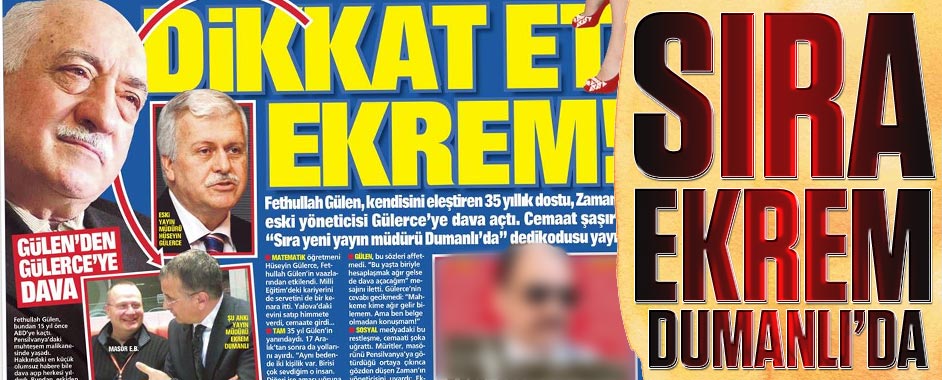 Zaman gazetesinin eski yayın yönetmeni Hüseyin Gülerce, Gülen için “Aynı bedende iki insan var” deyince hocanın gazabına uğradı. Gülerce’ye dava açılmasının ardından “Sıra Ekrem Dumanlı’ya geldi” yorumları yapıldı. Zaman gazetesinin eski yayın yönetmeni ve yazarı Hüseyin Gülerce de Fethullah Gülen ile davalık oldu. Gülen, geçen hafta sonu Gülerce’nin verdiği bir …